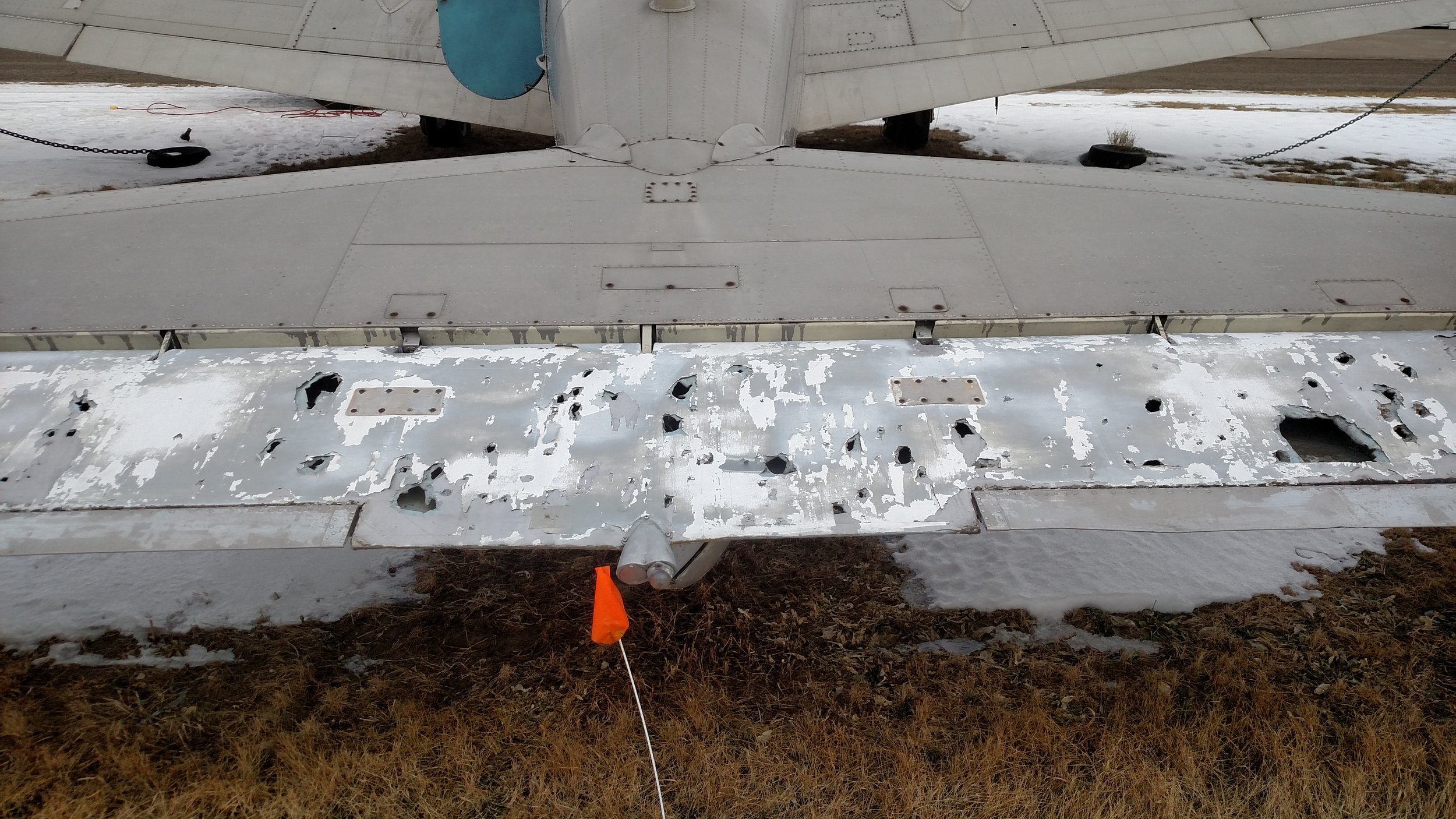 Well as you can see we have moved along a bit on our project and with the help of the local EAAers have removed the Horiz. stab and the outer wing panels. No surprises, just a lot of dirt and dust. Whats next? Dunno. I will roll her out of the hangar when it gets warm enough here in MN and power wash the entire thing, followed by new hardware Primer, corrosion control and whatever else we can afford. Can you say money pit !!